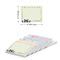 - Size: Each pad contains 50 sheets and the size is about 4 x 3 inches (10.1 x 7.6 cm).Made of premium papers that prevents ink bleed-through and ensures a needed and professional look every time.Well-designed format provides a lot of room to note down necessary things.These quality paper sticky note pads are designed for smooth writing and strong adhesion that can stick securely to desks, walls, notebooks, computers, refrigerators and more without leaving residue when removed.They are perfect for home, office, school, or any workspace where organization.Package includes: Set of 6 Sticky Note Pads (with 6 unique designs: Black Bombay Kitten Cat, Cute Pig, White Rabbit, Cochin Chicken, Winking Golden Retriever, Raccoon)