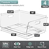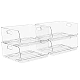 Sorbus Stackable Open Front Bins (4 Pack): Keep your kitchen, fridge, pantry, and more organized with small stackable storage baskets with open fronts - Easy to group food items and supplies by use, size, or type Open Front Design: Open style front provides easy grab n’ go access - Sorbus Stackable Clear Storage Bins save time and hassle of searching through a cluttered refrigerator, freezer, or pantry cabinet - Use as pantry stackable bins, clear plastic stackable storage bins for under the sink, open stack bins, and more Versatile Use: Great for storing fruits, veggies, packaged goods, yogurts, canned goods, drink boxes, baby food, condiments, cleaning supplies, bath products, makeup, and more. Versatile use as clear open front storage bins, stackable food storage bins, stackable kitchen storage, clear plastic bins for pantry, stackable cabinet storage bins, stackable bins for pantry, open bin storage basket, and stackable pantry bins Stackable Design: Extend stackable lips found at the bottom of each bin to stack vertically - Retract ridges to nest bins together to maximize space when not in use - Sorbus Open Front Stackable Storage Bins are lightweight and easy to carry Front Open Storage Bins Design Details: These stackable open storage bins feature a rectangular shape with rounded corners, open front, and clear frame - Stackable pantry organizer is made of strong shatter-resistant plastic - Built-in easy grip handles - BPA and chlorine-free - Clean open bins by hand - Measures approximately 16 x 12 x 6 in