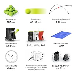 - Transform your tennis game with our advanced Smart Tennis Ball Machine featuring cutting-edge technology for players at all levels 🎾 Key Features: - ✅ Complete smartphone app control: Adjust speed (20-120km/h), frequency, angle, and spin types with precision - ✅ Intelligent programmable training: Create custom routines with 20 programmable landing points and one-click access to 12 pre-set modes - ✅ Professional versatility: Practice with fixed point, horizontal swing, vertical swing, deep/shallow, two-line, cross-court, random, high lob, topspin and backspin balls - ✅ Premium battery performance: External lithium battery (DC25.6V/6AH) with real-time level display and 4-6 hours of continuous use - ✅ Precision angle control: 20 vertical position settings (5-45°) and 30 horizontal positions for complete court coverage - ✅ High capacity: Holds over 100 tennis balls with adjustable feed frequency (1.8-8 seconds per ball) - ✅ Apple Watch compatibility: Connect and control machine functions directly from your wrist Advanced Training Capabilities: - 🎯 Fixed point mode: Perfect your accuracy and consistency - 🔄 Oscillation modes: Improve lateral movement and forehand/backhand transitions - 🎲 Random ball delivery: Simulate match conditions with unpredictable shots - 🌀 Spin variation: Master topspin and backspin returns - ⏱️ Variable speed function: Advanced 2.5-second speed changes for realistic play simulation Technical Specifications: - 🔋 Battery: External lithium DC25.6V/6AH with real-time display - ⚡ Power: 110V/220V adapter (100W) - 🚀 Speed range: 20-120km/h (12-75mph) - 🎾 Ball capacity: 100+ balls - 📏 Dimensions: 43.5×32×69cm (17.1×12.6×27.2in) - ⚖️ Weight: 15kg (33lbs) - 🛒 Includes durable aviation aluminum trolley (80kg/176lb capacity) Premium Warranty: - 3-year warranty for personal use (1-year battery warranty) - 1.5-year warranty for commercial use - schools, clubs, training centers (1-year battery warranty) Take your tennis training to the next level with this professional-grade ball machine that combines portability, versatility, and smart technology in one powerful package! 🏆