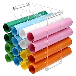 QWORK Clear Acrylic Vinyl Roll Storage Rack - 20-Hole Vinyl Roll Holder for Craft Room,12x10 Inch
