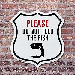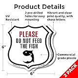 Please Do Not Feed The Fish (2 Pack) 6 inch X 6 inch Shield Shaped Commercial Grade Plastic Signs Weather Resistant Made in the USA