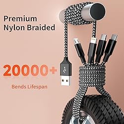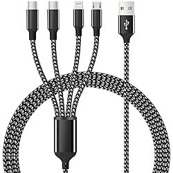 【DUAL TYPE-C PORT 4 IN 1 CHARGING CABLES】:Charge all your devices with this 4 in 1 multi charging cable. Built-in DUAL USB-C connectors, IP and Micro USB connectors, make the phone charger simple, lightweight and portable.Perfect for home, travel,business trips,dock or sharing with friends. (Only the lightn-ing port supports Data Transfer and CarPlay, 480 Mbps data sync). 【LATEST USB 4-IN-1 MULTI CHARGING CABLES】:Our latest 4 in one USB charging cable features four ports.Each port functions independently, allowing you to charge four devices simultaneously without any interference. Devices are charged at their optimal speeds. Unlike traditional single USB charger cords, this Multiple Charger Cable quadruples charging efficiency, saving you precious time and making your travel and office life much more convenient. 【EXCEPTIONAL DURABILITY】:Powerful military fiber, the most flexible, strongest material, increases tension by 200%.Special strain relief design withstands 20,000+ bending tests,MPATIBY USB C Multi Charging Cable resulting in a longer lifespan compared to ordinary charger cord.Plus, choose this universal phone charger cords as a little something for Christmas, your family, friends will be filled the convenience and warmth throughout the year. 【5FT PERFECT DESIGN DUAL USB C CABLE CORD】:5 ft universal USB C cord charger cable has a built-in Upgraded smart chip, which intelligently regulates the current,provides comprehensive protection to devices battery and adapters.The Multi-port connector lets you enjoy videos or games while lying on the couch. This charging cords for multiple devices can be used in different occasions such as bedroom, office or car. 【UNIVERSAL COMPATIBILITY】:2025 Portable travel essentials travel chargers cable.4 in 1 USB multi charger cable works with All USB Type-C/micro USB/ Lightning devices.Compatible with iPhone 17 16 15 14 13 12 11/SE/X/8/7/6/5 Series, Pad/Pod/Galaxy UItra/S24/s23/s22/s21/s20/s10/s9/s8/s7/s6/s5/Note 10/10/9/8 and other Android devices for most mobile phone charging.This product supports bulk purchasing, making it ideal for businesses and large orders. Since 2008, MPATIBY has been focusing on charging cable innovation and has established a dedicated team dedicated to charging cable research and development. 17 years later, we have the largest charging cable source factory in China. Specification Note: Final power distribution is subject to device-specific power negotiation and may vary based on connected load. Concurrent usage across multiple ports might impact individual charging performance. Designed for low-to-moderate power devices and standard charging applications. This CABLE is not a fast-charging cable.
