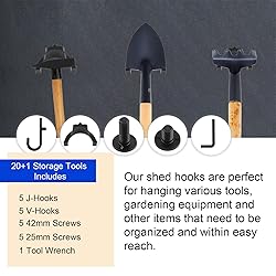 Product Content: You will receive 21 pieces of storage tool hooks and accessories for Suncast, Crafstman sheds, including 5 J-shaped hooks, 5 U-shaped hooks, 5 pieses of 42mm screws, 5 pieses of 25mm screws and 1 tool wrench. Premium Material: These storage shed hooks are made of good-quality ABS material, which is sturdy and reliable. They can support heavy objects without breaking, which can help you keep your tools and equipment organized. Practical Accessories: Our shed hooks are perfect for hanging various tools, gardening equipment and other items, making full use of your shed space. Special Design: J-shaped hooks can be used to hang objects such as water pipes, extension cords and U-shaped hooks can be used to hang gardening tools such as shovels and hammers. Allows you to hang a variety of different tools as needed. Compatibility: These tool hooks are compatible with Suncast and Crafstman sheds. Please note that our product is not sponsored or endorsed by, or affiliated with the brands it fits, including Suncast, Craftsman.