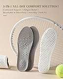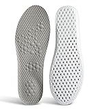 Superior Shock Absorption – Built with high-rebound 4D Cloud foam, these insoles cushion every step and absorb impact to reduce fatigue, heel pain, and pressure on joints, ideal for all-day comfort. Low Arch Support & Stability – Engineered with ergonomic low arch support, our shoe inserts help align your feet for better balance, reducing discomfort during work, sports, or daily activities. Breathable & Sweat-Resistant – Designed with 100+ ventilation holes and a honeycomb structure, these insoles allow airflow to keep feet cool, dry, and odor-free in sneakers, boots, or work shoes. Lightweight & Durable Comfort – Each insole weighs only 1.4oz yet offers resilient cushioning. Perfect for walking, running, workouts, hiking, or standing all day. Trim-to-Fit Versatility – Easily cut along the guide lines for a custom fit. Suitable for men and women in most shoe types, including sneakers, casual shoes, athletic shoes, and work boots.