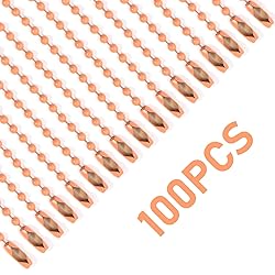 - Package include:You will get 100 pieces metal bead chain for jewelry making, each chain with connector clasp.Size:The length of chain necklace is approx 3.9 inch/10 cm; Each bead is 2.4mm in diameter, which is suitable to use in our daily life. Wide applications:These metal beadchains can to be keychains have a range of uses,aslo perfect for DIY craft items.You can match it with dog tag, sweater, ID badges, gift card,crosses, necklace pendants, and What's more,you can use it to hang nail files, label tags, foldable scissors, keys,dog tags, bottle cap pendant necklaces, scrabble tile pendant necklaces,or making your own key chains.Good Choice:In school and family activities, classmates and family members can use it to exercise their hands-on skills and enhance relationships. It can serve as an indispensable component. It is also an unfinished elegant gift, use it to make a unique gift to give to your loved.