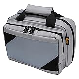 Constructed with Ripstop nylon & 1000 denier nylon Front pocket (9.5” x 7” x 1.5”) contains two zippered mesh pockets (9.5” x 5.5”) Main compartment contents: Two padded handgun pockets (10” x 7”) with secure tabs and wide heavy duty elastic loops to hold five handgun magazines Hand carry wrap-around handles with fabric closure Two soft loop areas for Morale patches