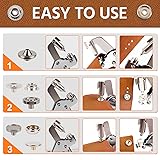 Valuable Set: The Snap Fastener Tool really good snap installer, quick to get started and save your time! This kit includes 40 sets of snaps to meet your everyday needs! Labor-Saving Design: The upgraded snap installation tool features a dual-lever structure. With a gentle press, you can complete the snap installation. The customized soft grip provides you with a more comfortable experience during installation Punching Function: The Snap Fastener tool enables both snap installation and precise punching. Simply switch the punching mold to effortlessly complete your punching tasks. This snap button kit eliminates blurry holes, delivering clean, accurate results every time Magnetic Suction Feature: For quick and smooth die changes, the canvas snap tool adopts a magnetic suction mechanism. The strong magnetic force ensures that you don't have to worry about the die falling off, making the die - changing process more quickly Ease of Use: The upgraded snap fastener kit bids farewell to the previous complex adjustment steps, truly out of the box. You can easily install the snaps just by simply reading the instructions, and even beginners can operate it with great professionalism Note: The snaps only work on materials that are 3 mm/0.118 inch thick. Otherwise, they may not be secure