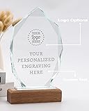ZALHIN Personalized Crystal Trophy Award with Solid Wood Base - Custom Engraved Plaques for Employee Recognition, Sports Trophies, Thanks Gifts