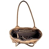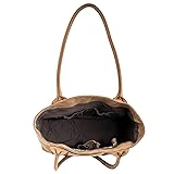 No Closure 16in W X 13in H X 5.5in D dimensions Dual Rolled Leather Carry Handles 1 Exterior Slip Pocket; 1 Interior Zip Pocket, 2 Interior Scrunch Pockets