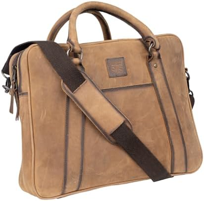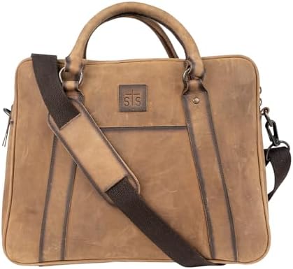 STS Ranchwear Foreman Full-Grain Briefcase Double Zip Closure with Pull Removable Leather Strap, STS-34313, Veg-Tan
