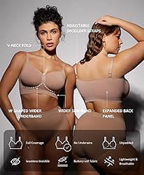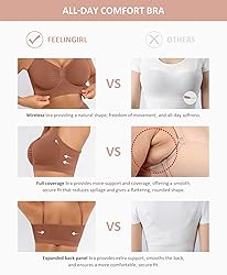 【Comfort Wireless Bra】Made with 85% Nylon and 15% Spandex, this bra feels smooth, soft, and lightweight against your skin. The wire-free design offers gentle support for all-day wear, making it so comfortable you can even sleep in it. 【Fits A to DDD】Designed with stretch fabric, our wireless bras adapt to different body shapes and cup sizes, from A to DDD. Whether you're petite or plus size, enjoy a flexible, comfortable fit that moves with you. 【Natural Support Without Padding】Our bralettes offer gentle, wire-free support with no padding. The wide underbust band helps prevent sagging while keeping you comfortable and secure all day. 【Adjustable, Non-Slip Straps】Designed for a custom fit, these non-slip straps stay in place without digging in. The wide sides help prevent overspill, while the wider back design smooths out bulges for a seamless, flattering look. 【Comfortale for Everyday Wear】Ideal for lounging, yoga, or light activity, our bralettes double as a T-shirt bra, sleep bra, or low-impact sports bra. Whether you're at work, traveling, or relaxing, they provide full coverage and a smooth fit under any outfit.