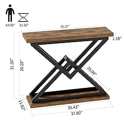 - JUSTOGO 39.4" Console Table Industrial Entryway Table for Hallway, Entrance, Foyer, Modern Accent Furniture for Living Room and Home Decor High-quality - This entryway table features 0.8mm thickened heavy-duty iron pipes and 1.18-inch thickened particleboards, the iron pipes are coated with baked paint to prevent rusting, while the particle board is coated with a waterproof layer to resist water seepage or peeling, making it easy to clean and maintain. Strong Stability - This intersecting triangular metal frame structure ensuring greater stability and weight-bearing capacity of the console table without shaking. Space-saving - The narrow design is ideal for smaller spaces, allows you to utilize an unused area without taking up too much space. It is an ideal piece for anyone in need of a console or accent table. Ideal Furniture for Home and Office - This console table is ideal for hallway, entryway, foyer, front door, living room, bedroom, and office. It blends seamlessly with your decor, making it a stylish addition to your space. Perfect for welcoming guests, it not only grabs attention but also showcases your unique taste, adding a touch of elegance to your home.