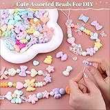 200-260PCS TINKRSTUFF Assorted Acrylic Beads Macaroon Color Cute Beads for Bracelet Making, Bow Aesthetic GummyBear Candy Butterfly Kawaii Charms for Jewelry Making DIY Necklace Keychain Phone Charm