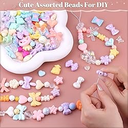 PACKAGE CONTENT - Includes 150g of macarooon colors assorted beads (200-260 pcs),enough to fulfill your DIY ideas.This set features transparent, jelly, iridescent, glitter and solid color effects. Along with shapes like hearts, butterflies, bows,and more MIXED SIZE - Our beads range in size from 1 to 1.5 inches, offering both chunky and delicate options. The bead holes range from 1 mm to 3.5 mm, with most being around 2 mm,suitable for both crystal strings and elastic cords. PREMIUM QUALITY - Made from durable and lightweight acrylic,perfect for crafting and jewelry projects.These beads boast a smooth surface, uniform color, and clear details. Additionally, they are washable and drop-resistant WIDE USAGE - Ideal for creating cute necklaces, bracelets, earrings, sun catchers, keychains, anklets, and accessories for phones and bags. They also pair well with other types of beads like glass, silicone, crystal, pony, metal or clay beads GREAT TIME - Working on DIY projects together can help develop creativity and imagination while providing quality bonding time.Please note that the charms are randomly mixed, so some specific designs may not be included in the package