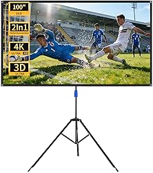 Projector Screen with Stand: WASJOYE Projector Screen with Stand has 100 inch viewing area, 16:9 widescreen aspect ratio, 160° panoramic viewing angle, compatible with most projectors High Quality Materials: 1.2 gain gray coating enhances image brightness to resist ambient light interference; fiberglass layer prevents screen wrinkling and deformation; black backing layer eliminates light transmission Projection Screen 2 IN 1: The projection screen has two installation modes, you can install it with a tripod, or you can mount the projection screen on the wall, simple steps to get two modes Adjustable height: The projector screen is equipped with an aluminum tripod to ensure stability on all types of floors. The stand height can be adjusted between 155 cm and 200 cm by turning the knob Multi Scene Use: The portable projector screen with stand meets a variety of usage scenarios. You can turn any place into a home theater to enjoy movie, sporting event, game and office presentations
