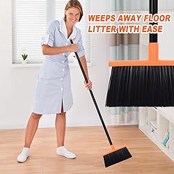 Adjustable Long Handle Design:This 56-inch adjustable angle broom features a steel handle with an adjustable grip, making it suitable for users of different heights. The adjustable design reduces the discomfort of bending during cleaning, improving cleaning efficiency. It's an ideal choice for heavy-duty cleaning tasks. Durable and Sturdy:The floor cleaning broom handle is made of 5-sections of heavy-duty coated steel, ensuring long-lasting durability and resistance to damage. Perfect for both indoor and outdoor use, this broom is suitable for homes, garages, kitchens, bathrooms, offices, and commercial spaces. Efficient Cleaning Bristles:With 4 rows of dense bristles, this broom effectively picks up dust, debris, crumbs, and leaves from hard surfaces. The bristles are designed to reach into tight spaces, ensuring a thorough cleaning experience. Multi-Purpose Use:This indoor broom/outdoor broom is versatile and can be used in various settings, including homes, garages, kitchens, bathrooms, offices, and outdoor areas. It’s perfect for cleaning hard floors, sweeping away leaves, or tidying up large spaces. Indoor and Outdoor Versatility:Brooms sweeping indoor or outdoor. Whether you're cleaning indoor floors or outdoor surfaces, this 56-inch heavy-duty angle broom is up to the task. Its sturdy design and efficient cleaning capabilities make it an essential tool for both household and commercial cleaning needs.