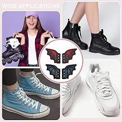 Eye Catching Design: The Leather Shoe Wing Bat Shoe Charm features a playful bat wing design that instantly elevates your shoes. Make you stand out in the crowd. The smooth wingspan lines and fine bone texture instantly give the shoes a mysterious and cool style, perfect for showing off your personality Premium Quality Material: Made of high quality imitation leather, this charm is strong and sturdy, not easy to deform, and with a fine finish, the surface is smooth and glossy, so it will stay as good as new for a long time. Not only is it stylish, but it is also durable, ensuring long-lasting use on countless adventures and outings Easy Care and Install: Simply wipe with a damp cloth to maintain the shine of the Bat Shoe Winged Shoe, ensuring it becomes a much-loved addition to your shoe collection. The shoe wing trim has holes that can be easily fitted to the shoe through the laces and can be fitted and removed in seconds for easy replacement Size and Quantity: You will receive 2 pairs of winged shoe decorations in 2 colours, black and red, size about 51.5mm wide, 101mm long, 2mm thick, hole: 3mm. 2 colours to meet different matching needs, whether it is dark style or trendy, can be easily adapted Multi-purpose: You can easily install the shoe decoration on all kinds of shoes such as sports shoes, boots, casual shoes, board shoes or flats, so that you can easily customise your favourite shoes. Whether it's for daily travelling, sports and fitness or trendy party, you can add unique charm to your shoes