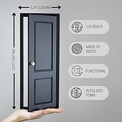 - This 1/6 scale dollhouse door is the perfect addition to your miniature projects, dollhouses, or dioramas. Featuring a classic 2-panel design, it adds an elegant and realistic touch to any setting. With precise dimensions of 13 1/3" x 5 1/4" (337 x 133 mm), it ensures a perfect fit into the designated wall opening. The door is crafted for easy installation and built to last, making it an excellent choice for hobbyists and collectors alike. It includes easy-to-install door handles for added convenience. This dollhouse door is available in stylish finishes — Black, White, allowing you to match it perfectly with your miniature décor. Not a toy