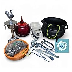 - Orula Hand Ritual Set – Complete Spiritual Kit for Ifá and Santería Ceremonies This authentic Mano de Orula set includes all essential ritual elements used in the Yoruba and Santería traditions. Carefully curated for spiritual practitioners, Babalawos, and followers of Orula, this kit provides the foundational tools needed for consultation, initiation, and altar work. The set includes: a black iron cauldron with traditional yellow and green eleke, a white Orula head sculpture, a wooden sopera with lid, a rooster stand, a clay dish, a full set of iron tools (12+ pieces), and sacred stones and elements stored in sealed bags. Each piece is made with high-quality materials to ensure authenticity and durability for spiritual use. Use this sacred set to honor Orula, enhance your rituals, and maintain a strong connection with spiritual guidance. Ideal for personal altars or as a ceremonial gift. Note: For ritual and spiritual use only. Not intended for children or medical use.