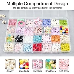The 28-grid plastic organizer box measures 8.85 x 5.19 x 0.59 inches, offering a compact and efficient solution for storing beads, charms, and other small craft supplies. Constructed from premium, durable PP plastic, this storage box is lightweight yet sturdy. Its transparent design makes it easy to see the contents, ensuring you can quickly find what you need. The box features a grid-patterned cover that ensures small items won’t shift or spill even if the box is shaken or dropped. It also includes two durable locks to securely close the box, preventing accidental openings. This organizer is ideal for storing a variety of small items, including pony beads, clay beads, seed beads, jewelry-making charms, and even screws. It keeps everything neatly organized and easy to access. Whether you're into crafting or need a solution for everyday storage, this bead organizer box helps keep your items orderly and accessible. It's an essential tool for both hobbyists and everyday users.