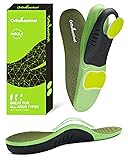 【Professional High Arch Support】OrthoComfoot plantar fasciitis insoles engineered for high arch, these insoles provide firm arch support to align the foot and relieve stress from heel to lower back. Ideal for people with plantar fasciitis, flat feet, or chronic arch pain. 【All-Day Comfort Technology】High arch support inserts women features triple-layer cushioning with a PU base, Metatarsal, and a GEL heel pad to absorb impact. Whether walking, standing, or working long shifts, these insoles deliver lasting comfort. 【Corrective & Preventive Orthotics】High arch insoles designed by foot care specialists to address common arch-related issues including overpronation, shin splints, and metatarsalgia. Helps plantar fasciitis relief & correct poor posture and gait imbalance. 【Deep U-Cup Heel & Stability Shell】Shoe insoles men reinforced U-cup heel design cradles your foot, improves balance, and prevents heel slippage. Added TPU shell enhances arch integrity and foot alignment. 【Trim-Free Fit for Any Shoe】Available in full sizes for both men and women. No cutting needed—just insert replace and go. Inserts thicker by design to deliver proper cushioning and structure, will occupy some interior shoe space.Fits most footwear including athletic shoes, work boots, and casual sneakers.