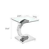 Binrrio 23in Square Glass Sofa Side Table with High Gloss Stainless Steel Base, Glass and Silver End Table for Living Room Office, Small Coffee Night Stand with Clear Top