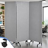 【Large 3 Panel Privacy Screen】Each Privacy Panel Screen is connected by zipper, smart design allows for individual use or combination to create a larger 2 Panel/3 Panel room divider screen according to your project demands. The flexible design allows for wrapping the room partition around office desks and tables to create private workplace. They can also be easily folded up and stored in the garage when not in use. Each Panel Size: 23.62”L x 65.75”H Max Size: 72.24”L x 65.75”H 【Blocking Out Distractions】Office Partitions is made of Eco-friendly material wrapped in a two-layer fabric, which can absorbs at least 85% of noise, provides a quiet working environment that keeps you away from distractions and allows you to focus on what really matters. This high - performance soundproofing feature helps you focus better and get more work done. The reinforced metal base is rust-proof and maximises the life of the partition room dividers 【Moving Easiler & Smoothly】Our sound proof dividers is equipped with 12pcs self-lockable swivel wheels, which help you move around more easily. The brakes on the room divider wheels will improve the stability and prevent slipping. The PE material wheels are quiet and floor-friendly, preventing scratches and noise. Ideal for offices, homes, studios, and more, it provides a perfect blend of mobility and stability, allowing you to create private spaces or divide larger areas with ease 【Flexible & Folding Panel Divider】The offices partitions are connected by zippers and can be freely combined. This not only provides a more durable and stable connection but also allows the soundproof room divider to rotate 360 degrees. The foldable privacy screen can be adjusted into various configurations like L-shaped or W-shaped. It folds easily for storage, optimizing space in any corner 【Added Personalization】The offices partition wall is made of tackable material, allowing you to customizes and display it to your liking. It's perfect for attaching photos, to-do lists, and memos to personalizes your workspaces. And with a quick 10-minute installation, you can easily create your ideal space