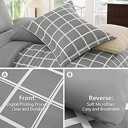 CozyLux Queen Comforter Set with Sheets - 7 Pieces Plaid Bed in a Bag Set Grey, Soft Queen Bedding Sets Bed Set with All Season Quilted Comforter, Flat Sheet, Fitted Sheet, Pillowcases & Pillow Shams