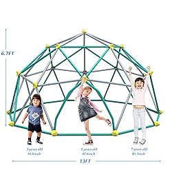 - The 12ft Geometric Dome Climber Play Center is a durable and fun outdoor play equipment that supports up to 1000 lbs. It encourages children to climb, improving their physical fitness, coordination, and balance skills. The rust-resistant steel frame is easy to assemble and disassemble, making it perfect for outdoor use. The safe design includes rock climbing handles to protect children's fingers. This play center promotes teamwork, confidence, and strength in multiple children. - Enhances physical fitness and coordination skills - Promotes teamwork and confidence - Easy to assemble and disassemble - Safe design with rock climbing handles - Supports multiple children playing together Each steel pipe fulcrum is equipped with a climbing bracket that is convenient for kids to step on, which definitely stimulates children's climbing interest. This jungle gym is solid enough to bear weight within the indicated load-bearing capacity, so you don't need to worry about shaking. It's great amusement equipment for your kids both for outdoor and indoor use.