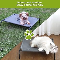 【Suitable pet size】:CZPET Cat Bed size of 23.6"L x 20.5"W x 5.1"Th.This spacious bed is perfect for two regular-sized cats,and small to medium-sized dogs. Your furry friends will have plenty of room to stretch out and relax. 【Breathable and Comfortable Material】: Made from breathable three-layer mesh fabric, our dog cot keeps pets cool and comfortable. It provides a cozy spot for them to rest or sleep, while also keeping them away from hot, cold, or dirty floors. 【Usable Indoors and Outdoors】: With its rugged design, our CZPET cat hammock is perfect for both indoor and outdoor use.This dog hammock bed lets your pet enjoy fresh air anytime, anywhere! 【Convenient Storage】: When not in use, our cooling elevated dog bed can be easily folded and stored in a bag. The basic assembly makes it convenient to set up and take down whenever needed. Say goodbye to clutter and hello to a tidy space with our CZPET Raised Dog Bed. 【Easy Maintenance】: The Pet Bed made it easy to keep our dog bed clean and fresh. The removable cloth cover allows for easy cleaning, and the bed has excellent drainage. It dries quickly in the shade and has a higher drying speed compared to polyurethane and hard cotton. With our CZPET Raised Dog Bed, maintenance is a breeze.