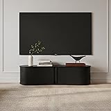 - VERTOXIA Fluted TV Stand with Storage Cabinet, 59″ Media Console with Sliding Tambour Door, Mid Century Modern Entertainment Center for Living Room, Oval Light Wood TV Stand for Bedroom, Black