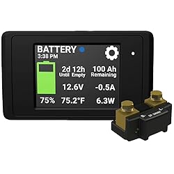Monitor essential battery statistics including: Time left at Current Draw, State of Charge, Capacity, Voltage, and Current Integrated Bluetooth Technology In the Box: Touch screen color display, 500A max shunt, Ambient light sensor, Connectivity cables, and RV-C and Bluetooth compatible 2-year warranty
