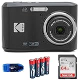 KODAK Pixpro FZ45 Digital Camera Bundle, Includes: SanDisk 64GB SDXC Memory Card, Spare Batteries and Card Reader (4 Items) (Black)