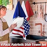 Peryiter 4 Pack Patriotic 4th of July Kitchen Towels Red White and Blue Dish Towels American Stars Flag 24 x 16 Inch Independence Day Decorations for Home Memorial Day Kitchen Gift