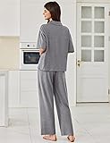 Ekouaer Women Pajamas Set Button Down Sleepwear Short Sleeve Pjs Soft Comfy Nightwear with Long Pants S-XXL