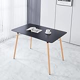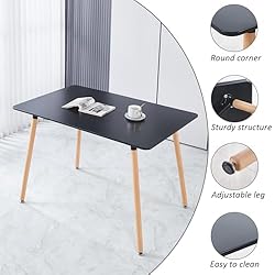 【Modern Wooden Dining Table】 This stylish modern wooden dining table features a spacious 45” x 40” tabletop that comfortably accommodates 4 to 6 people. With a sleek black MDF surface and natural wood legs, it blends functionality with a contemporary look to enhance your dining experience, making it perfect for family meals or gatherings. 【Sturdy and Durable Construction】 Constructed with a high-quality MDF board, the rectangle dining table boasts a strong and stable build. It can support up to 250 pounds, ensuring a reliable surface for meals, drinks, and more. The durable material offers long-lasting performance, making it a perfect addition to any kitchen or dining room. The table includes anti-scratch foot pads to protect your floor. 【High-Quality Waterproof Top】 The MDF tabletop of this Kitchen Dining Table is crafted to be durable and easy to maintain. Finished with a smooth, waterproof surface, it resists stains and scratches, making cleanup quick and easy. Whether it's spilled drinks or food crumbs, a simple wipe-down will restore its pristine condition. The 0.7-inch thickness ensures the tabletop remains sturdy and reliable, offering long-lasting beauty. 【Versatile Use in Various Spaces】 Not just a dining table—this modern wooden dining table can also serve as a versatile piece in your home. Whether used in your kitchen, dining room, or even as a functional workspace, it adapts effortlessly to your needs. Ideal for small apartments, cozy kitchens, or spacious living rooms. 【Easy Assembly & Support】 The rectangle dining table comes with clear, easy-to-follow instructions and all necessary tools for a hassle-free installation. The table measures 71"L x 40" W x 29.5" H, assembly is a breeze with the provided hardware and detailed instructions. With the easy-to-follow guide, you and a partner can assemble the table in under 30 minutes. If any issues arise, our dedicated team will respond within 24 hours to address your concerns.