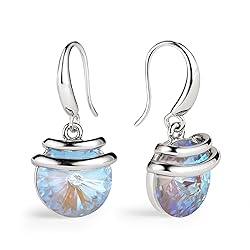 It is a French Wire earrings with FISHHOOK backings, is stunning looking and comfortable to wear, so easy to put it on and take it off. The two spaced straps atop the crystal, add to its mystique like an orange being peeled. The crystals that are featured on each is the main attraction of the set. It is so eye catching it sparkles at every angle and when the light hits them They hang about 1.29 inches and are about 1/2 inch wide at the crystal (side to side) Come with a Embellished JEWELRY GIFT BOX, which would be a perfect gift choice for someone special, such as lover, girlfriend,friends, mother, wife... TIPS: To prevent tarnishing don't use with while applying hair spray or wear in the shower