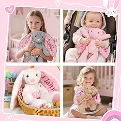 【Custom Embroidered Plush Bunny】 Click “Customize Now” to create a personalized embroidered plush bunny for your loved one. The unique embroidery process makes your bunny sparkle. Customize your bunny in the Personalized bunny toys make an attractive gift for any occasion! 【Personalized Baby Easter Gift】 Personalized bunny stuffed animal are the ideal companion for babies and kids alike, suitable for soothing babies while they sleep and play. Perfect for newborns, birthdays, flower girls, Christmas or any milestone celebration; a thoughtful keepsake that combines charm and function! 【Handmade & Safe】 Customizable Name Plush Bunny is made of high quality, super soft plush fabric for long lasting comfort; gentle on sensitive skin and easy to clean. The filling is PP cotton (higher grade than polyester fiberfill). Can be washed in the washing machine, please air dry after washing. 【Personalized Baby Bunny Toys】2026 Newly made personalized plush bunnies have a cute look and soft surface. We use buttons to articulate the plush bunny to make the bunny's posture more flexible. This baby toy comes in three sizes: 10.5 inches, 14 inches, and 17 inches; four colors and a variety of fonts to choose from. 【Perfect After-sales】You can contact us with any questions, we will solve it for you. Note: We use vacuum packing, when you receive the goods, you need to smooth the rabbit's belly from head to toe to bring the fur back to perfection.