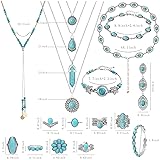 NEWITIN 20 Pieces Silver Bohemian Jewelry Set for Women Fashion Costume Jewels Turquoise Necklace Bracelet Ring Earrings Western Turquoise Jewelry Set for Women