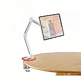 Adjustable Viewing Angles: Featuring a 3-section long arm and 360° rotating base,Features a multi-angle design that allows for 360-degree rotation and adjustable height, providing the perfect viewing angle for watching videos, reading, video conferencing, or browsing. The tablet mount easily folds flat for convenient storage and portability, making it perfect for use at home, in the office. Heavy Duty Reliability---This durable portable monitor stand mount is made of high quality Aluminum Metal,minimalist design with a thickened tube for enhanced stability. Its durable construction ensures long-lasting use without rust or fading. High quality: all-aluminum alloy lazy bracket, surface matte texture, base 360° rotating comes with mechanical sound, chuck can be clamped and placed design, for various purposes, chuck base all has high-quality silicone pad design, anti-slip and wear, protecting furniture and equipment. Versatile Compatibility: This tablet stand holder for desk Suitable for all 4-12.9-inch tablets, mobile phones, e-readers, multi-screen devices, perfectly compatible with iPad Pro 11/13 inch, iPad Air 11/13 inch, iPad 10/9th Gen, iPad Air 4/5, iPad mini 5/6, Samsung Galaxy Tab S9/S9+ Plus/S9 FE/S9 FE+/S9/S8/S8+/S8 Ultra/A9+/A8/S7/S6/S6 Lite series, Kindle Fire HD 10/8, Surface Pro 9/8/7, and more 4 to 12.9 inch portable monitors, drawing tablets, e-readers 【EASY ASSEMBLY】 Our tablet mount offers a tool-free setup, attaching easily to surfaces up to 2.36 inches thick. Its foldable design allows for easy storage without disassembly, keeping your space tidy when not in use.