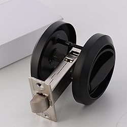 LEICHI Black Stainless Steel Door Knobs Ring Hidden Recessed Cup DoorKnob Furniture Pulls Flat Door Handles Furnture Door Lock, Door Lock, Home Entry Door Handles Lock with Black Chicago Screws, 1 Set