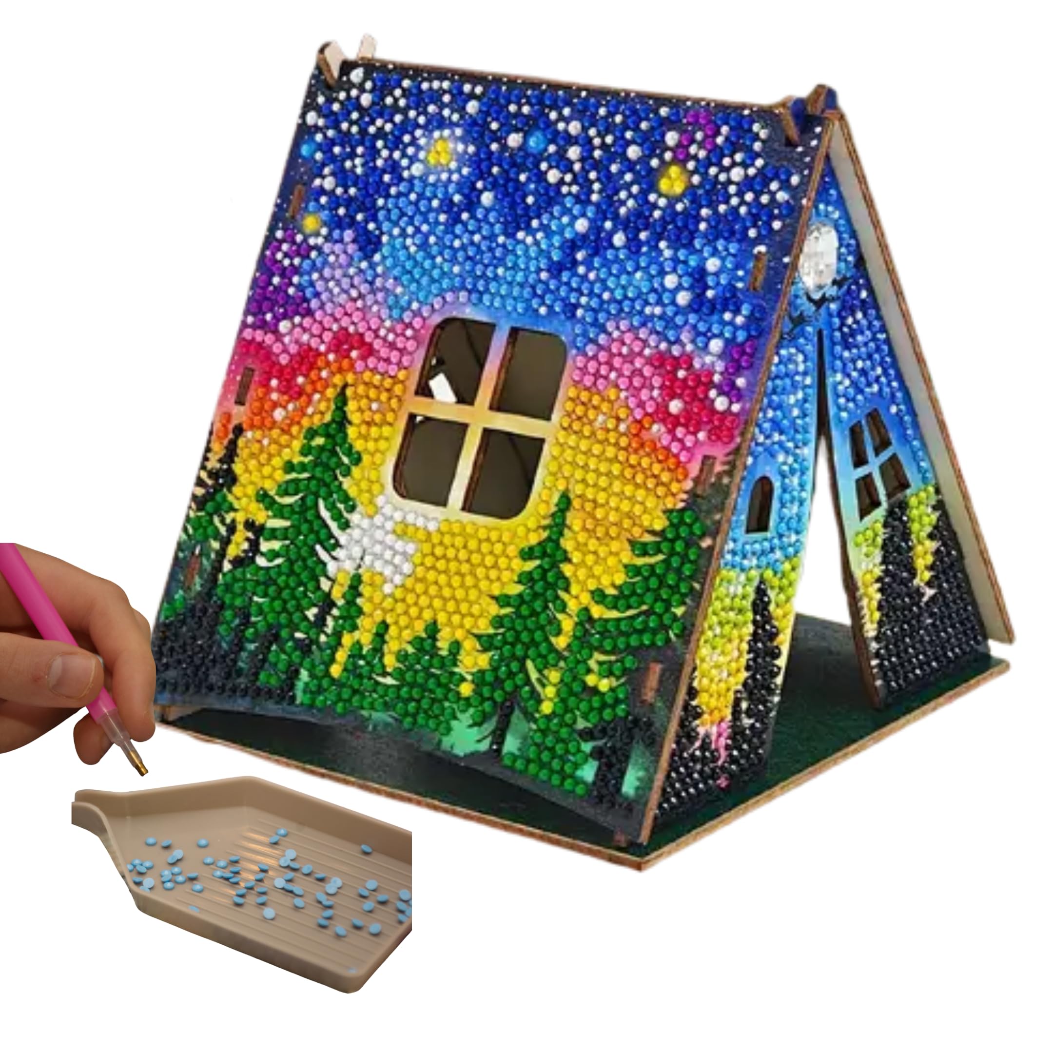 - Create a sparkling decorative masterpiece with this 3D diamond painting cabin kit, a unique DIY craft that combines miniature building with full-drill diamond art. Designed for adults and teens, each kit lets you assemble and decorate a detailed cabin model using shimmering rhinestones for a truly eye-catching finished piece. With multiple cabin designs available as variations, this set offers a relaxing, hands-on crafting experience that results in a beautiful home décor display or giftable keepsake. Key Features: Full 3D Diamond Painting Design Each kit features a complete full-drill diamond layout, allowing rhinestones to cover the structure for maximum sparkle and visual impact. DIY Miniature Cabin Building Kit Assemble a detailed cabin model while placing diamonds, combining creativity, focus, and satisfaction in one engaging project. Relaxing & Rewarding Craft Activity Designed to help reduce stress and improve concentration, making it ideal for hobby time, creative breaks, or weekend projects. Sturdy, Display-Ready Finish Once completed, the cabin stands on its own as a decorative accent for shelves, desks, or craft rooms. Multiple Design Variations Available Choose from different cabin styles while enjoying the same premium materials and crafting experience across all options.