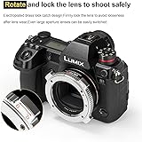 【Compatibility】VILTROX EF-L Pro mount adapter is compatible with Canon EF/EF-S lens and L-mount camera Leica SL2/Lumix S1 S1H S5/Sigma fp L. 【Auto Focus】Built with strengthened copper electronic contacts,EF-L Pro adapter will give you fast speed and smooth focusing experience. You can also adjust the aperture of EF lens by control L Mount series cameras body. 【Lens Stabilization】Support lens stabilization,making your focus more precise and clear, which better help you take pictures. 【EXIF signal transmitting】EF-L Pro adapter can transmit the EXIF signals to your camera and display the current information on the screen( like Aperture,Shutter Speed,Exposure parameters, etc). 【Security Lock Design】EF-L Pro adapter has a security lock,which make the lens lock tighter and avoid loose problem caused by lens wear.The security lock is perfect for large lens.