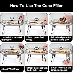 More Than Just A Tray – Comes with two preroll cones filler inserts (King Size and 1 1/4 Size) that fit into the tray surface, allowing you to easily sweep or brush ground material into paper cones with less mess. Elevated Tray Design – Rotate the foldable legs joint to raise the tray for a stable, ergonomic setup. Side holders keep rolled cones upright and ready during use. Holder on the side allows easy access. Complete Accessory Kit – Includes a grinder, cleaning brush, and a rolling pen – helpful accessories for shaping cones using standard cones rolling paper. LED Edge Lighting – Features a soft LED light strip around the tray's edge, adding both visibility and a stylish glow to your cones rolling. Organized & Efficient – Designed to keep everything in one place, this tray makes preparing your herbal blends or alternative neat, fast, and convenient.