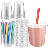 Ziliny 50 Sets Clear Cups with Lids and Jumbo Smoothie Straws Disposable Plastic Cups for Smoothies, Bubble Milk Tea, Milkshakes, Cold Drinks(12 oz)
