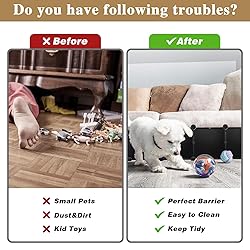 【Say Goodbye to Pets Crawling Under Furniture】 Keep your pets away from tight spots with our under bed blocker. Designed to block gaps beneath beds, sofas, and shelves, it prevents pets under 25lbs from sneaking in and keeps lost toys out of reach. No more bending over or crawling on the floor—enjoy a cleaner, stress-free home today 【Triple Reinforced Protection】Crafted with reinforced resin panels and a durable steel frame, this bed blockers for under bed ensures long-lasting sturdiness for peace of mind. It comes with zip ties, sticky double-sided tape, and connectors to guarantee a secure hold, making it the ultimate pet-proofing solution for homes 【Clutter-Free Furniture Made Effortless】 From stray tennis balls to dust buildups under your furniture, our under the bed blocker for pets helps you keep your house organized and spotless. Fast installation saves you time and backaches, while its innovative design eliminates everyday mess. Perfect for busy households with pets or kids 【Versatile Design for Multiple Uses】This under furniture blocker adapts to your needs—whether as a practical pet barrier, storage divider, or organizational tool. Use it to block gaps beneath beds, sofas, dressers, or bookshelves while creating clutter-free and pet-safe spaces. Flexibility you'll love 【Tool-Free & Hassle-Free Installation】 Our quick installation panels are designed to protect your furniture without needing screws, nails, or glue. Simply snap the panels together with included heavy-duty connectors—add more panels to extend coverage as required. A simple, damage-free solution with tutorial assistance included 【Practical Under Bed Blocker Sets】 Under couch blocker sets for pets include toy blocker*21, connectors, zip ties, and sticky double-sided tape to help you solve the problem that has always been.