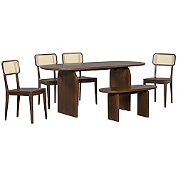 💕【Sturdy & Stylish Design】This 6-piece dining set is crafted with a solid rubber wood frame that’s built to last, so no more worrying about wobbly tables. The oval tabletop and sleek trestle design give it a timeless, yet fresh look that’ll make your dining room the new hot spot for gathering! 💕【Comfort Meets Chic】The set includes four rattan-back dining chairs that are as comfy as they are stylish. The chairs offer the perfect balance of support and elegance, creating a cozy spot for everyone to settle in and linger long after dessert is served. 💕【Built for Big Meals and Big Families】With a 300lbs weight capacity for the table and 250lbs per chair and bench, this set is strong enough to handle family feasts and dinner parties alike. Plus, anti-scratch foot pads ensure your floors stay pristine, no matter how many times you rearrange the furniture. 💕【Choose Your Color, Elevate Your Space】Available in two stunning colors(Brown or Natural), this set can seamlessly match your home’s style—whether you're going for classic charm or modern flair. It’s a versatile, eye-catching addition that’s sure to spark compliments from all your guests! 💕【Excellent After-Sales Service】Overall:Table: 71x30.5x29.5inch(LXWXH); Dining Chair:16.1x16.7x33.7inch(LXWXH), Seat to Ground:18.1inch;Dining Bench: 38.0x14.0x18.1inch(LXWXH).This product comes in 2 separate packages, some simple assembly is required. We offer friendly customer service, and all tools and instructions needed are included. If you have any quality problems, please contact us, we will always reply within 12 hours.