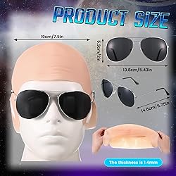 Package Includes: dive into a world of imagination with this complete set that include 1 wrinkle bald cap, 1 mesh wig cap, and 1 adult black lens glasses; This package is good for creating memorable looks with your friends or family, whether for Halloween, music festivals concerts, theater performances, star party cosplay or themed parties Realistic and Fashionable Effect: achieve a striking transformation with the good blend of style and realism; The bald cap dimensions are 12.9 x 7.48 inches,can contours naturally to your head for a lifelike appearance, while the chic black lens glasses add a touch of trendy flair; Together, they craft a distinct and unforgettable image Ideal Expectations: experience unparalleled comfort with every wear; The wrinkle bald cap's smooth, soft surface and the skin-friendly, non-slip black lens glasses ensure you can enjoy long hours in costume without any discomfort, enhancing your overall experience Durability for Countless Adventures: the wrinkle bald cap is designed to resist allergies and keep you dry, while the tough black lens glasses are resilient and easy to store; You can count on this set to withstand the test of time and multiple uses Versatility for Creative Exploration: bring your creative visions to life with this versatile costume kit; Whether you're taking the stage in a play, hosting a theme party, music festivals, concerts, theater performances, star party cosplay or simply exploring new characters, this set provides unlimited opportunities for fun and artistic expression