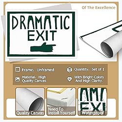 Funny Dramatic Exit Posters Dark Green Modern Mid Century Wall Art Minimalist Aesthetic Canvas Prints Vintage Drama Lovers Wall Decor for Hallway Bedroom Entryway 12x16in Unframed