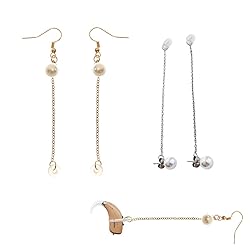 - Features: 100% brand new and high quality. Material:Metal Color:Silver+Gold Material:Made of metal and plastic materials Size:Chain length 8 cm/3.14 in Fashion:Exquisite pearl shaped ear clips, exquisite and fashionable Purpose:To prevent the loss of your hearing aid equipment Package Contents: 4 x Hearing Aid Chain Clip